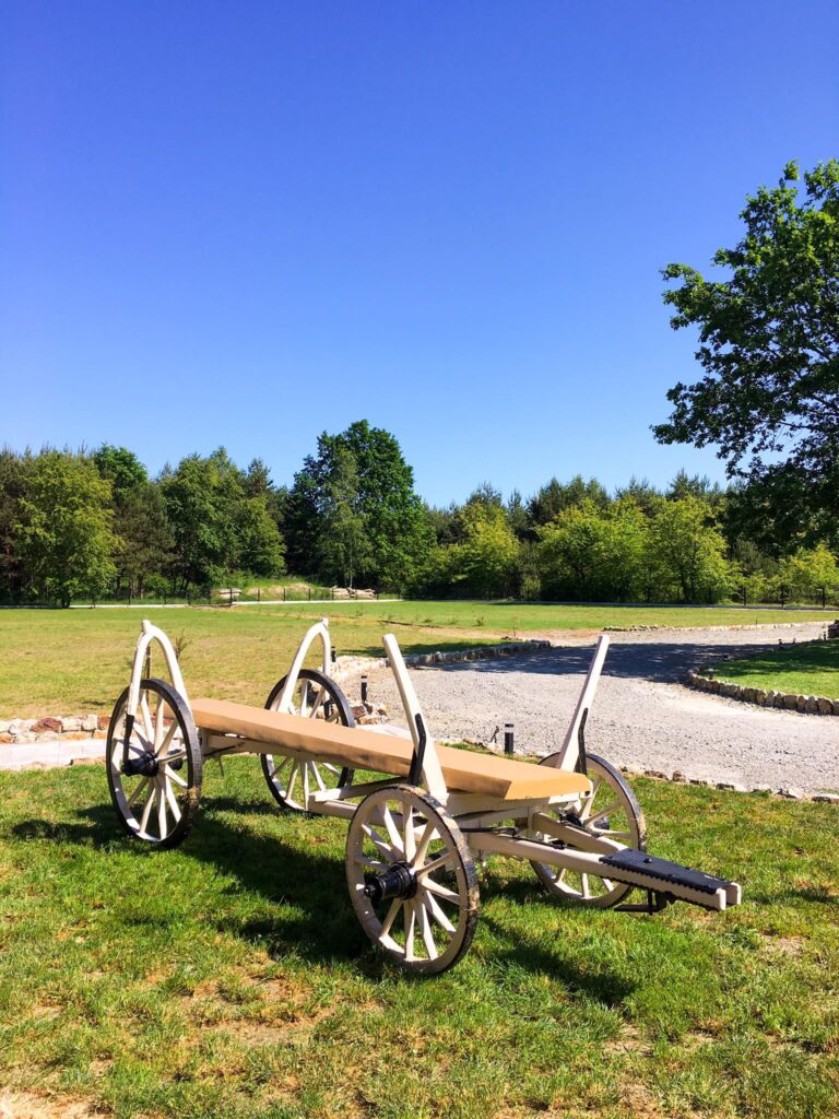 Od samego początku starany się, aby styl naszego domu weselnego był jak najbardziej naturalny oraz świetnie łączył się z drzewami oraz krzewami wokół. Dodatkowego uroku dodają zdobione wozy konne, na których można wygodnie usiąść i zrelaksować się przy wspaniałych widokach! 🏞🤍